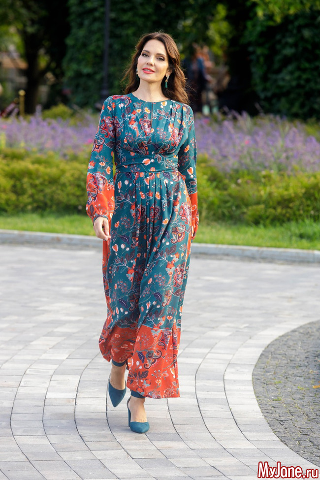 Харизматичная Оксана Сташенко предстала в эффектном платье «Фрида. Пэчворк», которое, словно «вулкан страстей», идеально обрамило яркую энергию актрисы.