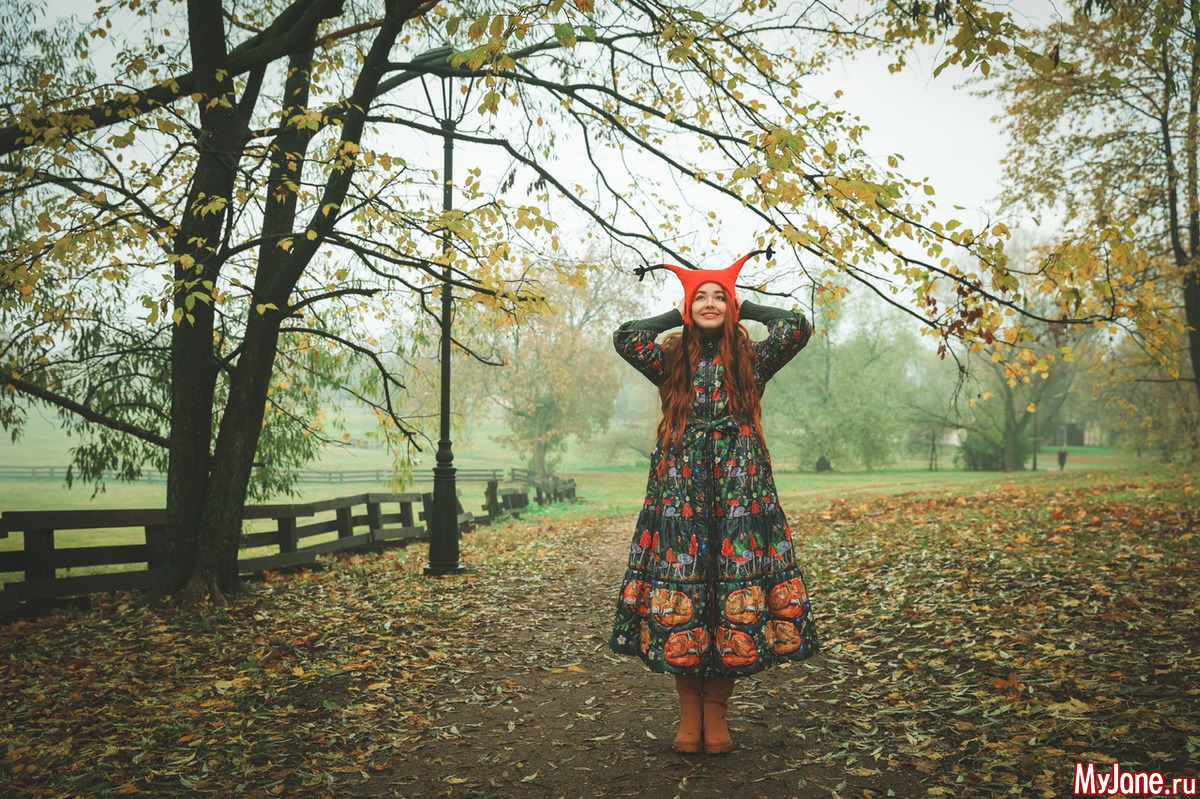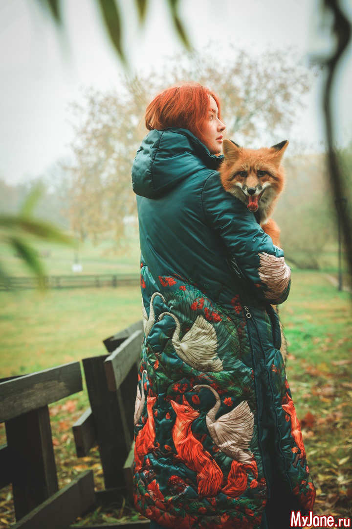 Именно «Лиса и Лебедь» называется капсульная коллекция от «Душегреи», которая была выбрана для фотосессии, ещё один образ этого дня - эффектное пальто «Мухоморы» из демисезонной коллекции бренда.