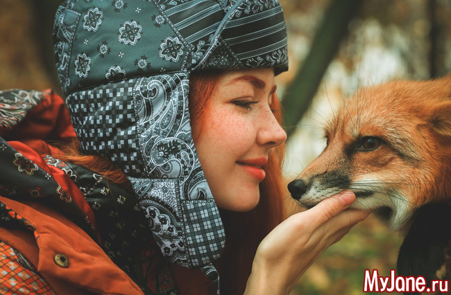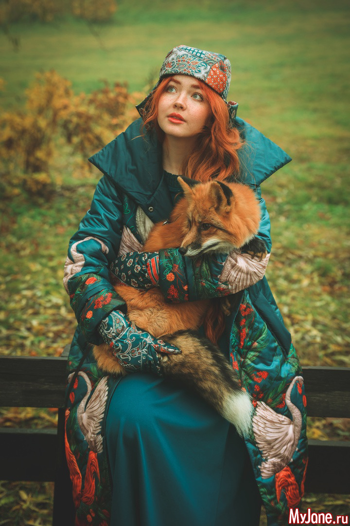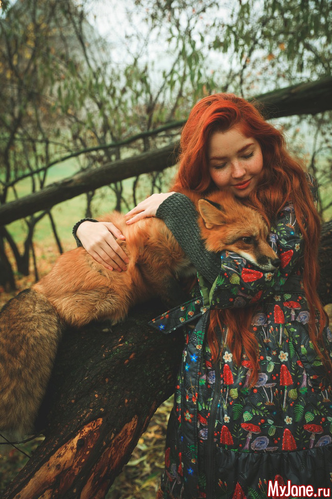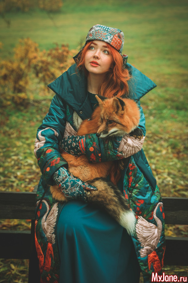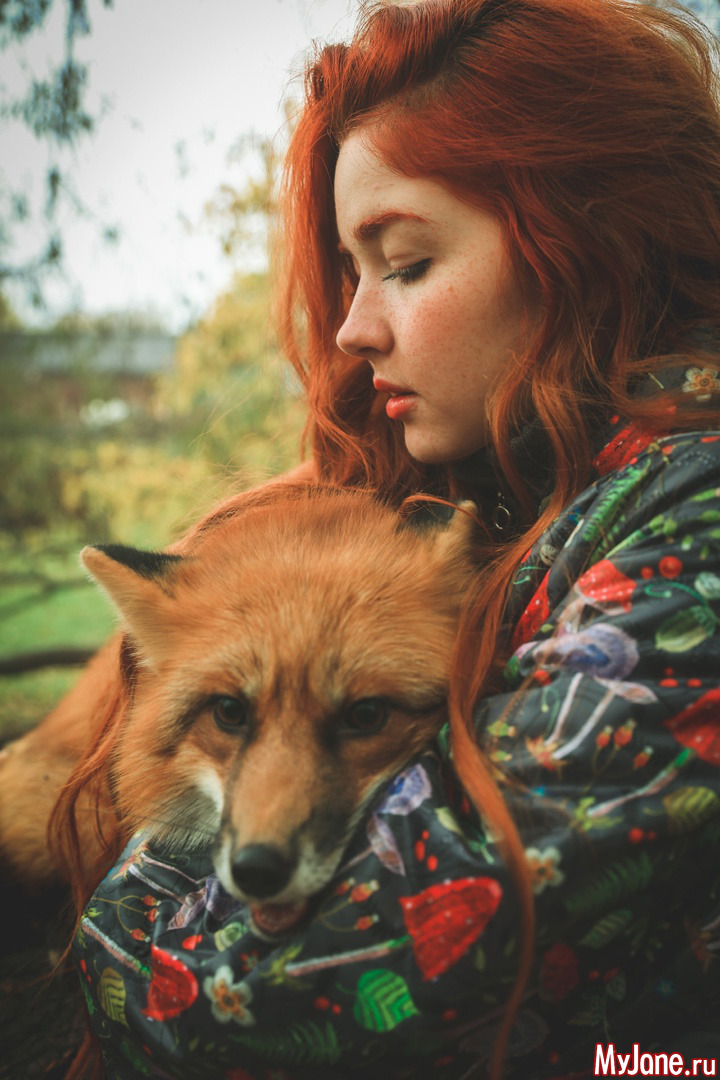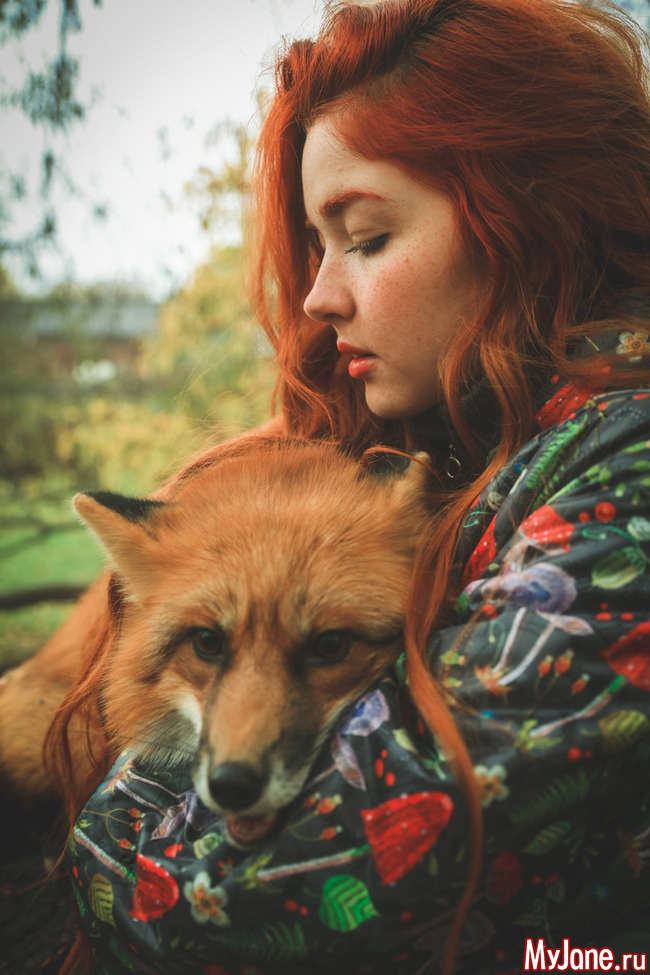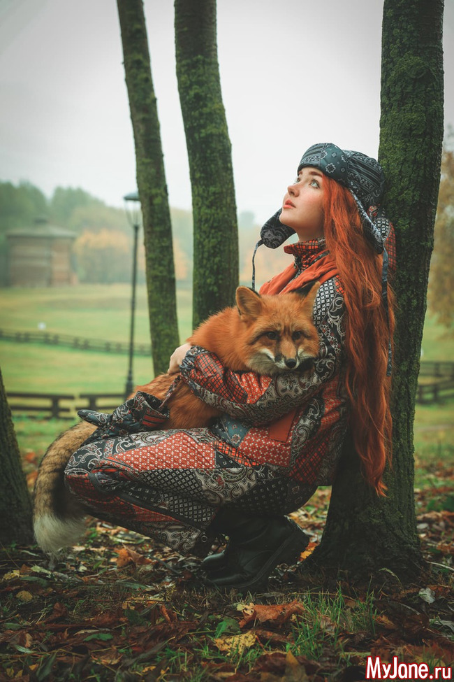 Модель Анна Ситкина в компании озорной и задорной живой лисички настолько органично и гармонично смотрится в дивных пейзажах золотой осени, что, кажется, прямо сейчас родится ещё одна русская народная сказка, под названием «Лиса и Лебедь» или «Отдых Лисы на поляне из мухоморов».