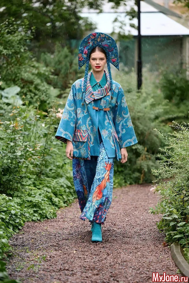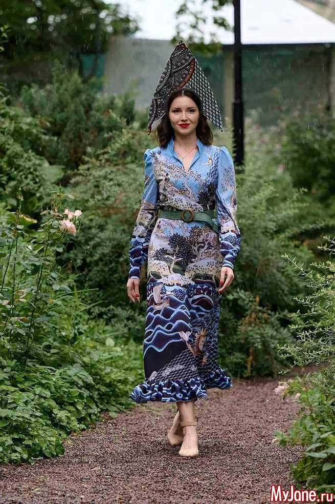 Символично, что открывала показ актриса Алеса Качер, представшая в пленительном образе из «Сказки о рыбаке и рыбке», в котором принты гармонично сочетаются с разнообразными комбинациями морской цветовой палитры.