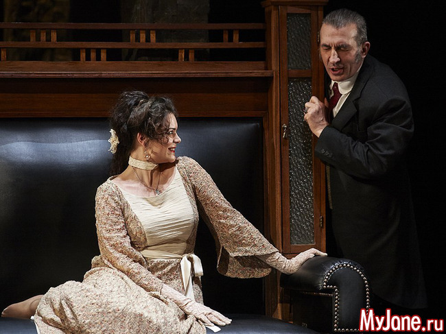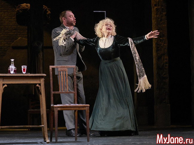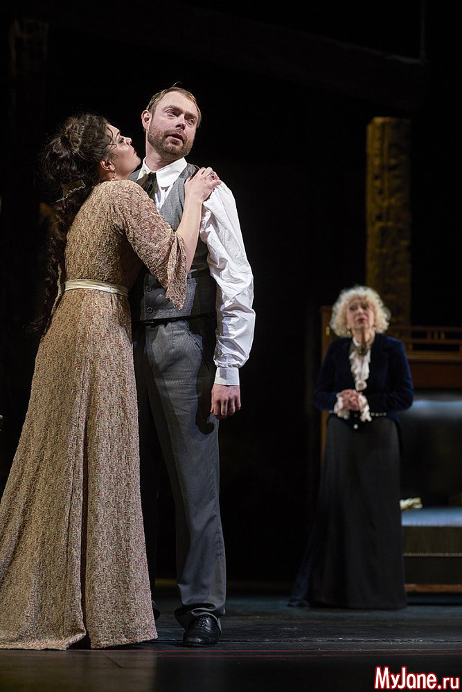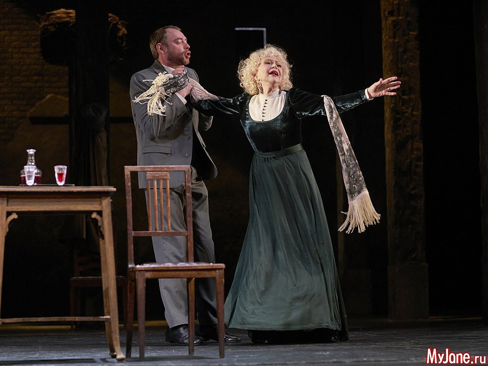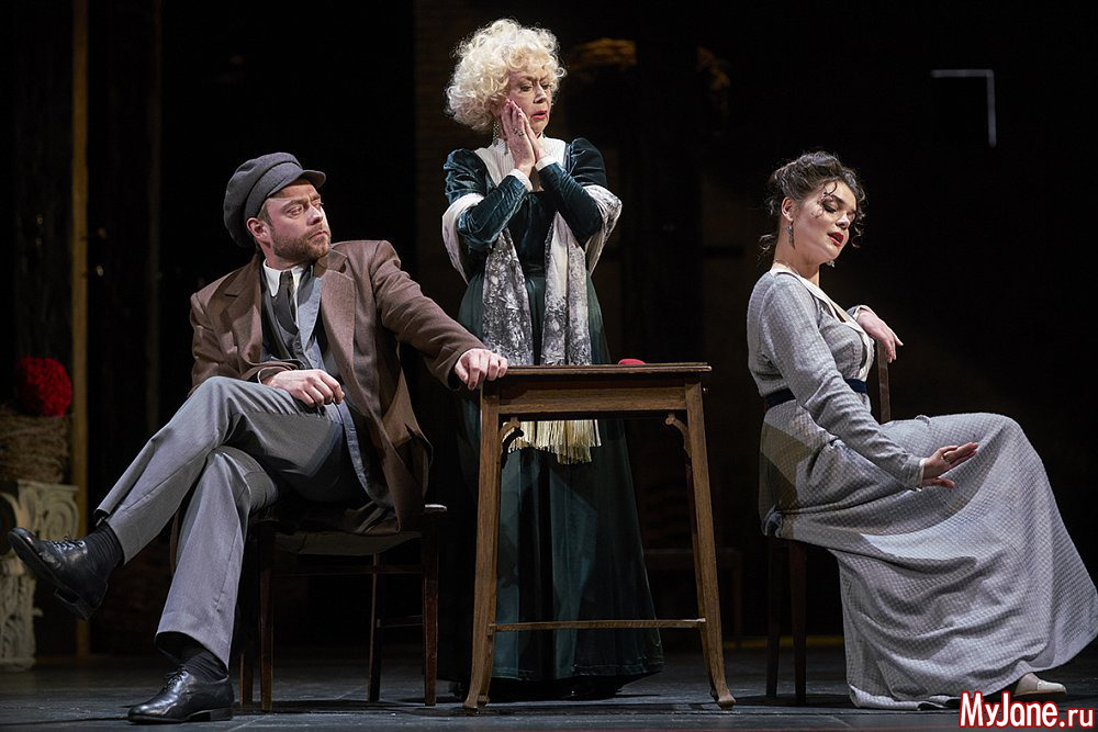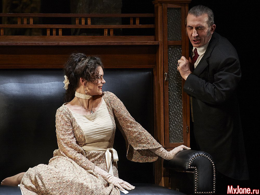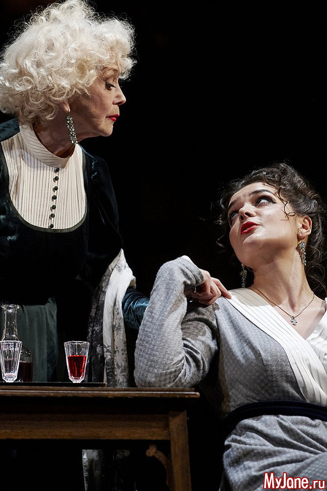 Такого же кредо придерживается и её мать: Надежда Антоновна невероятно гостеприимна с теми, от кого предполагает получить выгоду. Предполагаем, что на этом спектакле в театральном буфете особый спрос на игристое шампанское: Чебоксарова-старшая настолько заразительно поднимает тосты во время «деловых» переговоров о судьбе своей дочери, что невозможно устоять перед соблазном, чтобы в антракте не пригубить бокал вина.