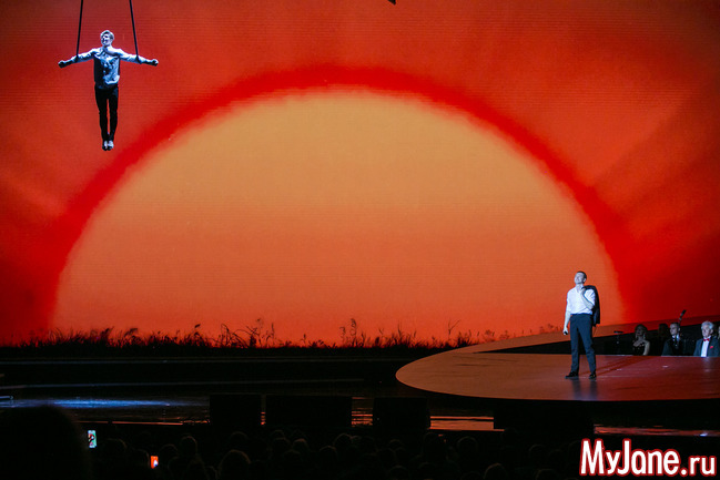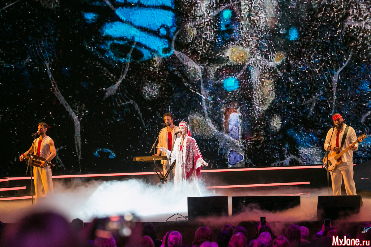 Перед выходом на сцену Пелагеи на экранах показали фрагмент из сериала «Есенин», который двадцать лет назад стал актёрским дебютом певицы. Пелагея исполнила эпичную «Гой ты, Русь».