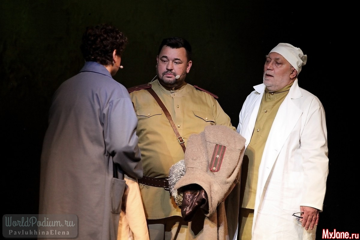 Сам Сергей Жуков предстаёт в образе известного артиста, который выступает в прифронтовом госпитале для раненых бойцов. В другом составе этого героя воплощает актёр Московского Губернского театра Сергей Вершинин. Этот герой, хоть и не является главным, вносит важную лепту в драматургию действия и отдаёт дань памяти всем тем артистам, кто поддерживал солдат на фронтах, рискуя жизнью, поднимал боевой дух и дарил минуты любви и тепла в адском пекле смертельной схватки.