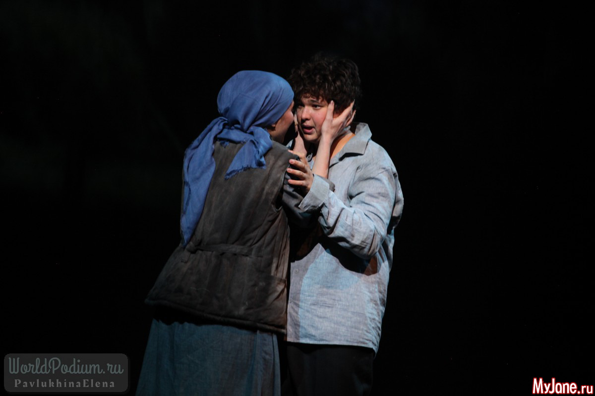 Отдельно отметим исполнителя роли Малыша (в нашем фоторепортаже – Серафим Саломатников, в другом составе – Григорий Дружинин). Детская наивность и непосредственность, находчивость и бесстрашие Малыша восхищают. То, с каким трогательным трепетом более старшие подростки заботятся о своём новом друге, вдохновляет и умиляет, и это тоже очень важная и нужная часть постановки: чуткость, внимание и забота о ближнем.