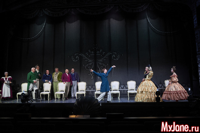 Сцена, в которой все чиновники по очереди идут давать взятки юнцу, поставлена очень иронично, а совместные сцены с маменькой и доченьками – отдельный вид искусства. Да-да, мы не оговорились – у каждого из Хлестаковых в спектакле есть пара: дочь Городничего воплощают тоже две сестры, Галина и Полина Медведевы.