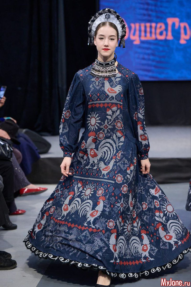 Бренд, недавно отметивший 10-летие, представил коллекцию «Вечорка.ru», на Открытом показе был аншлаг и царила душевная атмосфера. В дефиле приняли участие модели агентства Slava Models, музыку написал Алексей Палагин на основе трех народных наигрышей.