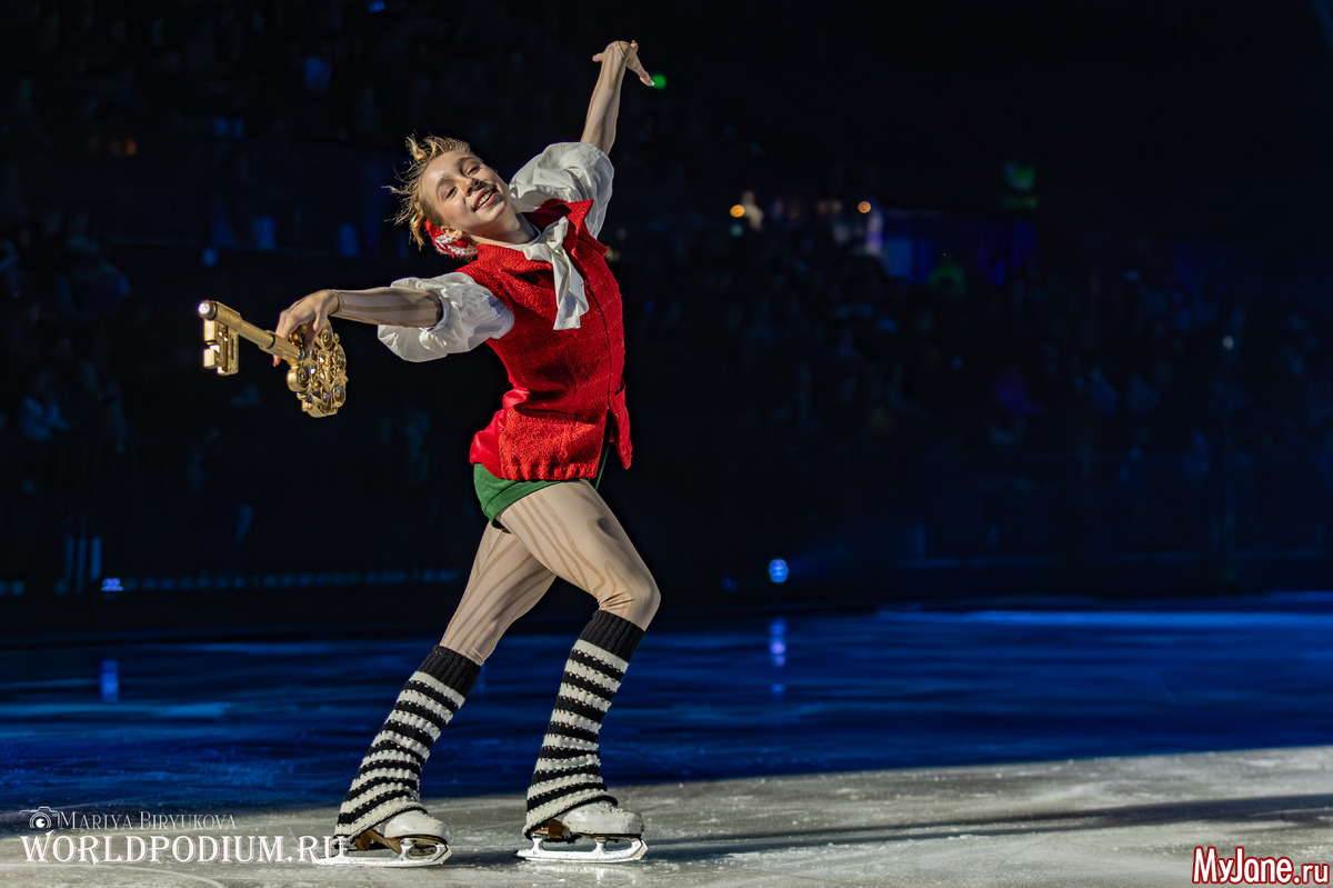 Роль Буратино исполняет Серебряный призёр Чемпионата России, победительница и призер этапов юношеских гран-при, и победительница взрослого Гран-при России Алиса Двоеглазова.