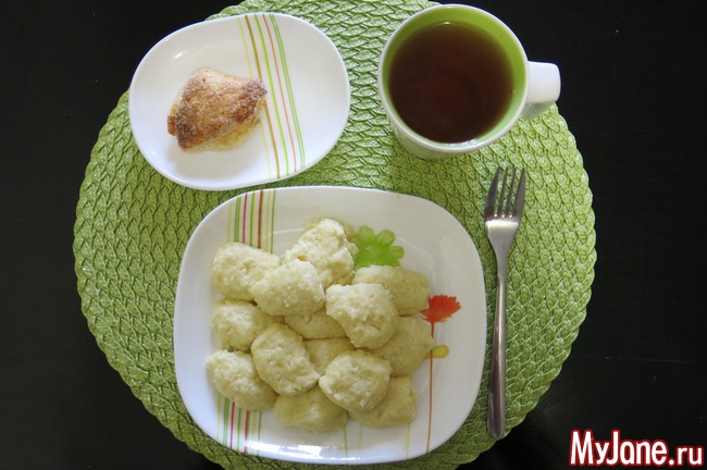 ленивые вареники из творога (попробовала сделать на пару - на вид не очень, но на вкус ничего так), 1 печенька творожная домашняя, чай
