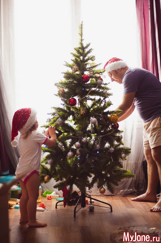 первая Машина елка, которую она наряжает. В голове не укладывается, что когда она родилась Оля была вот такой же крохой, как Маша сейчас! Тогда мне Оля казалась старше, чем Маша теперь...