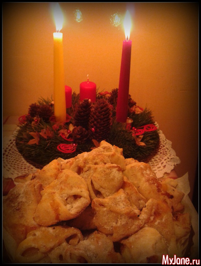 Корица, яблоки... этот запах один из символов Рождества. У нас в декабре всегда появляются чаи с корицей! (Это необыкновенно). Пока чай я не купила, но приготовила вот такие пирожки или слойки с яблоками и с... конфетами коровками!