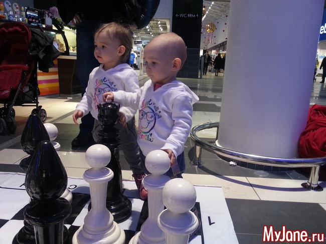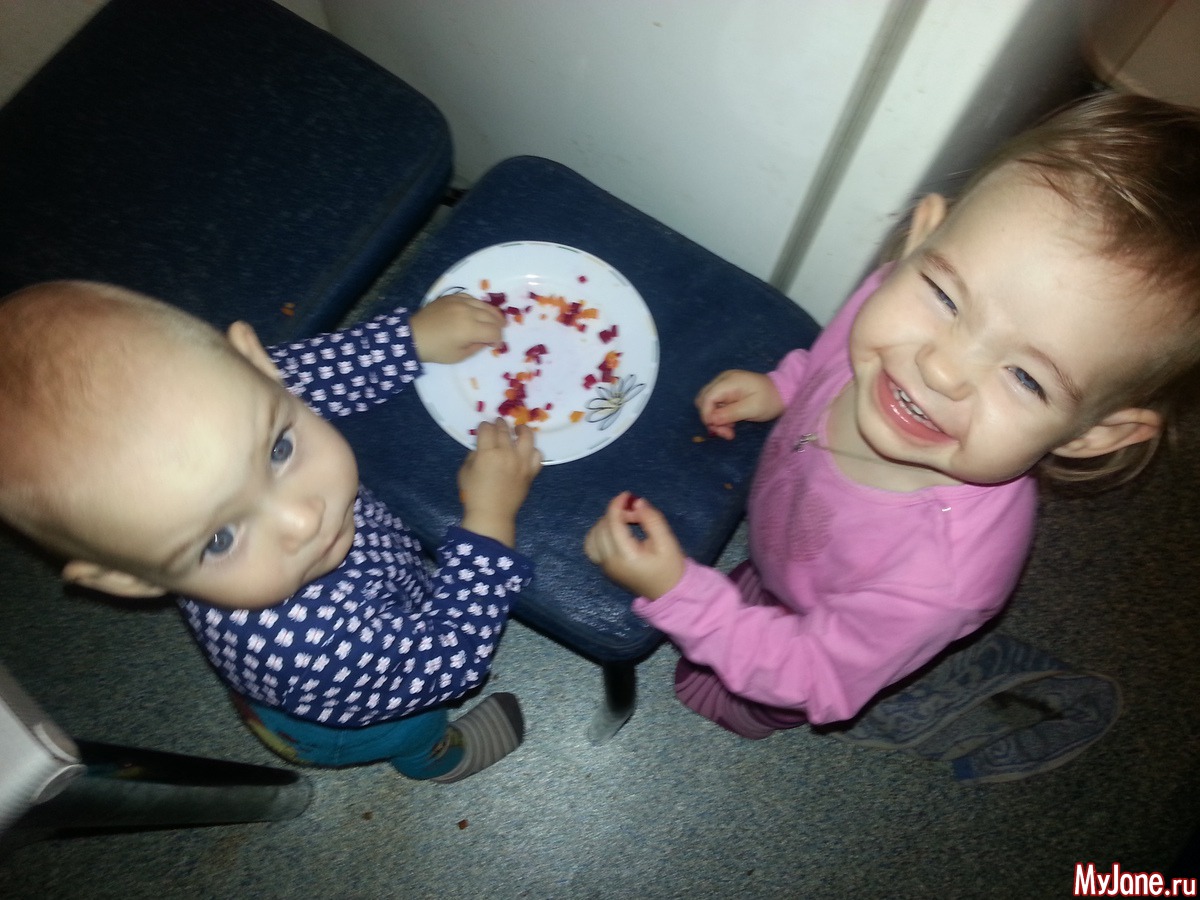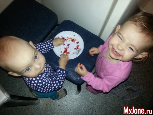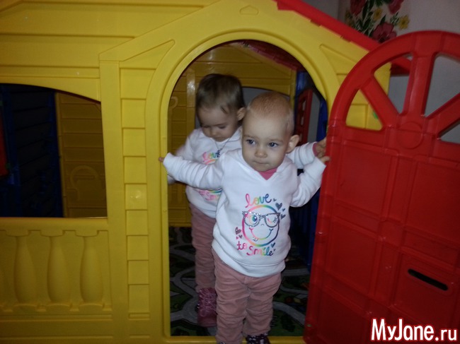 Девульки мои растут- нам уже 1,3 года. Дом наш утром превращается в большую помойку и убрать все можно только перед сном. Так как в одном углу убираем, в другом тут же разбрасываем. Начинают болтать что то человеческое. На словарный запас пока скуден- мама, няня, баба, бо (кот Боссик), мяу, гав-гав, муууу, ррррр (тигр, мишка и все что рычит), кака ( кака, пока, как? ) таты таты таты ( стих "аты баты-шли солдаты), мяка (мягкая), Остальные слова не идентифицирую. Между собой базарят на инопланетном, только им понятным языком. Сейчас покажу фотки ( обещала Маришке)