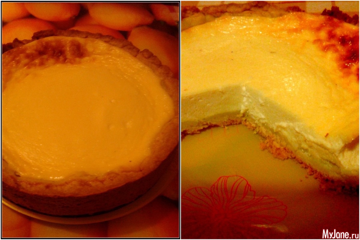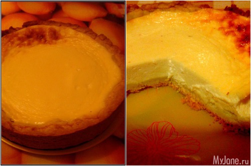 Bылить на тесто, должно получиться так, что бортики будут выше, чем начинка!