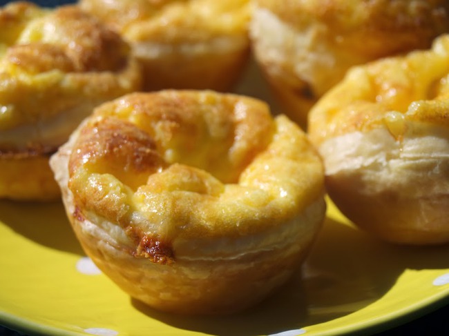 1. Из теста вырезать кружочки размером с небольшое блюдце. Уложить кружочки в формочки для маффинов.