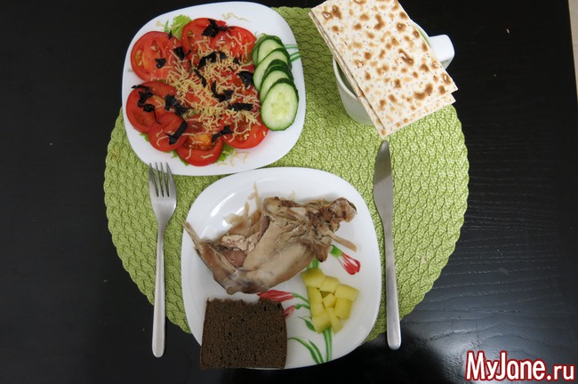 мясо кролика, кабачок отварной, хлеб, овощи, три хлебца, кефир