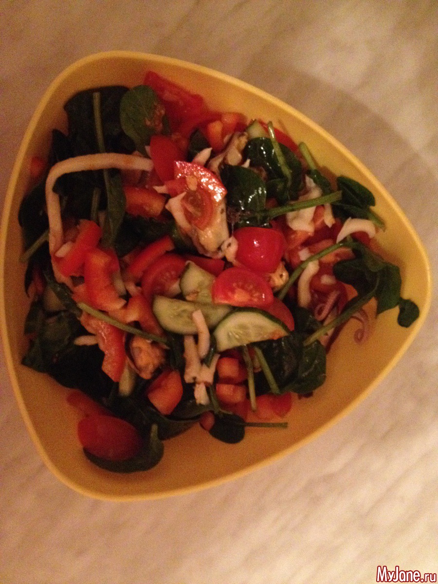Салат с морепродуктами на оливковом масле