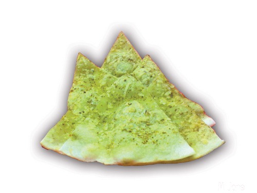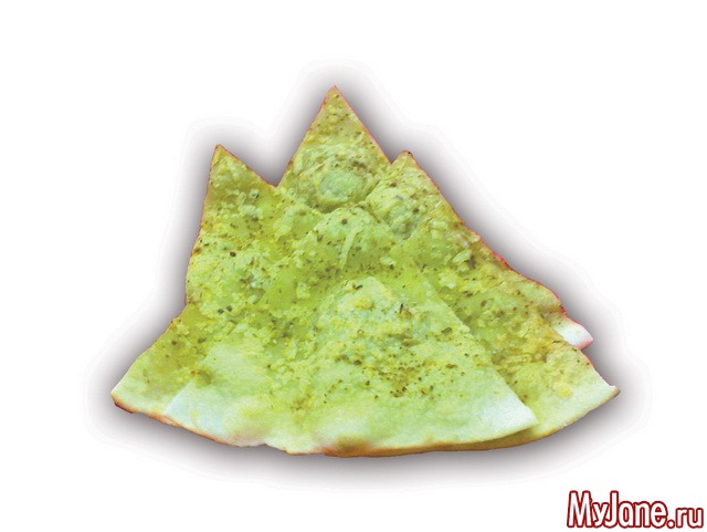 Фокачча это лепешечка толщиной в 1,5 мм и в диаметре 15 см., а песто на ней намазано наверное граммов 10