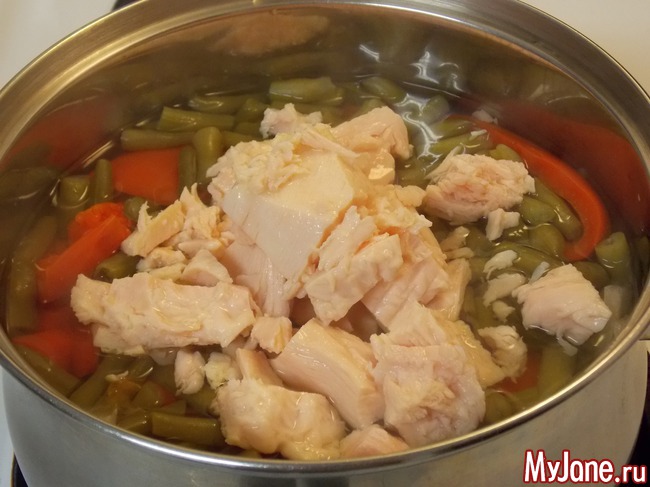 добавляем куриную грудку