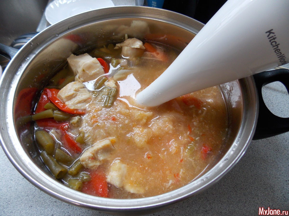 а из овощных супов с морковью, капустой и луком, можно сделать овощное пюре, усилив белок куриной грудкой