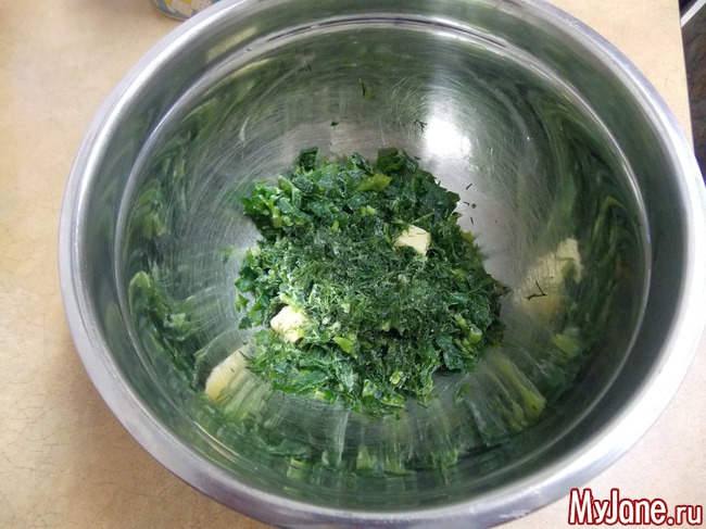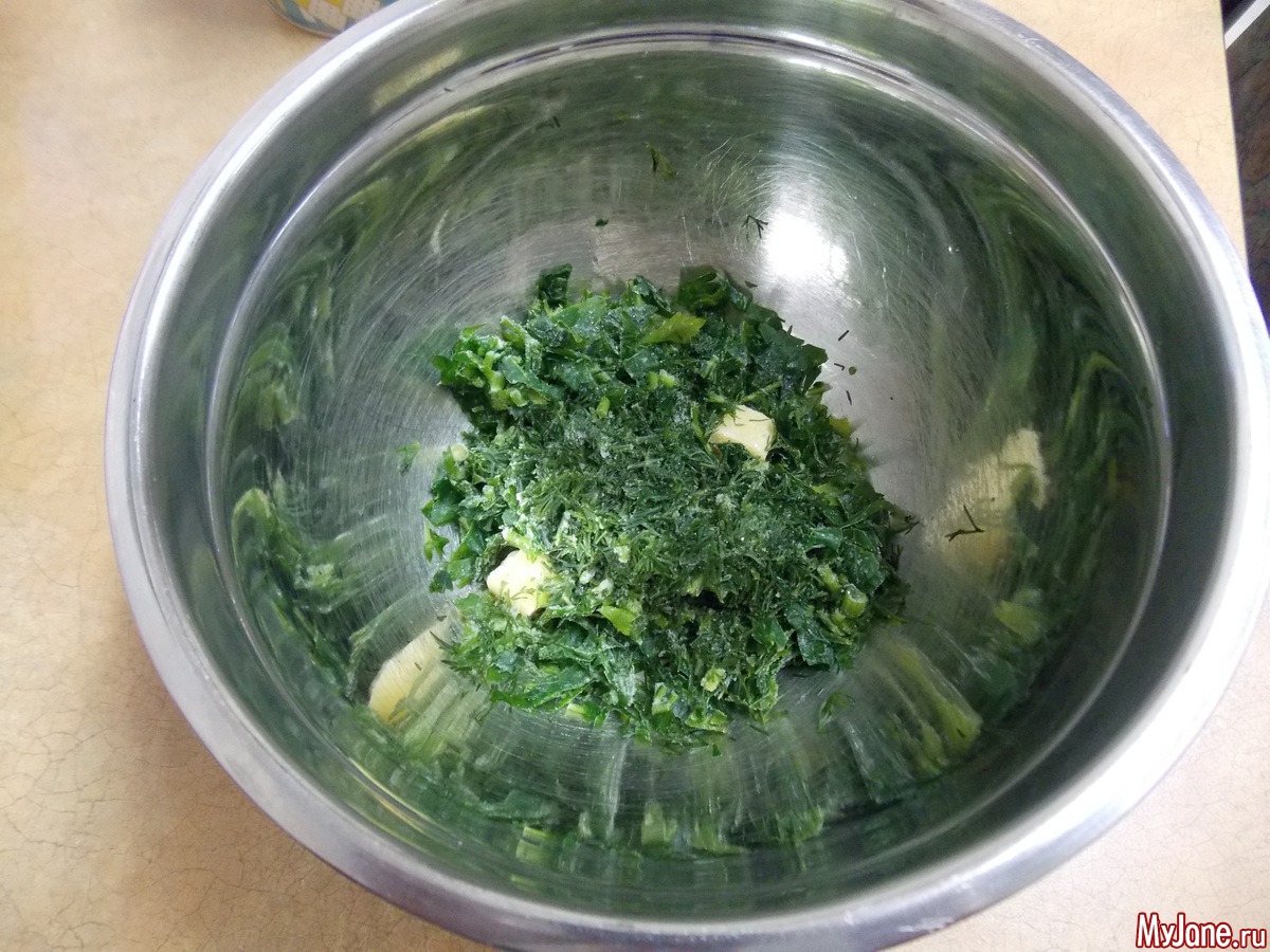 Кладем зелень и чеснок