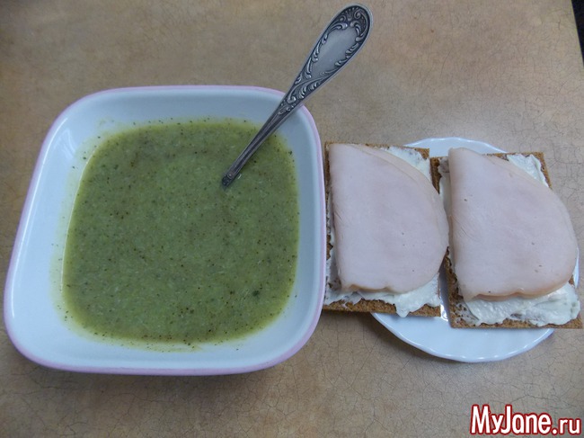 тарелка горячего супа с куском хлеба и нежирным сыром тянет на 250 ккал, а вполне сытный обед.