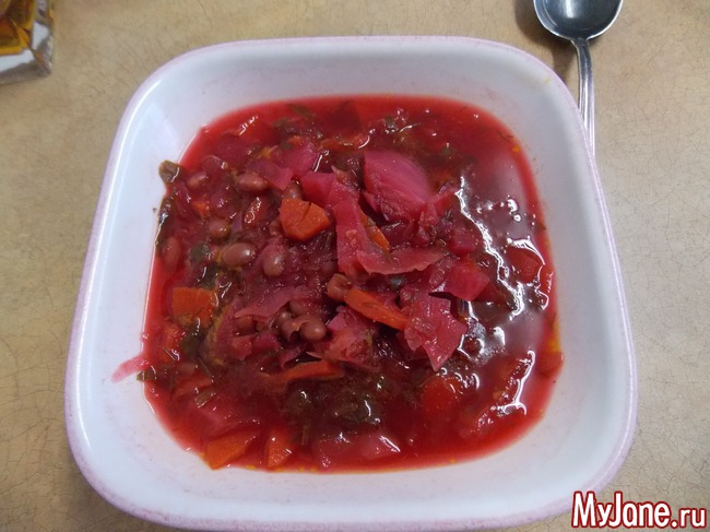Стандартный борщ с фасолью уже «весит» больше при полном наболе продуктов