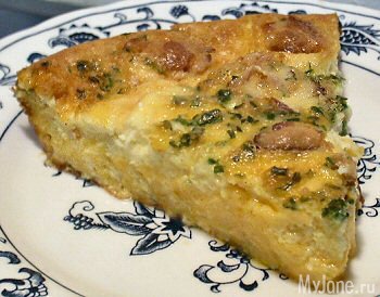 можно приготовить такую запеканку в виде пирога с бортиками из теста. Основу можно сделать из несладкого песочного или сметанного теста. Сам корж надо немного пропечь, чтобы середина не была влажной.
