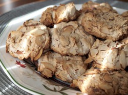 2. К белками всыпать молотый мендаль и вымешать тесто, добавить в тесто миндальные хлопья.