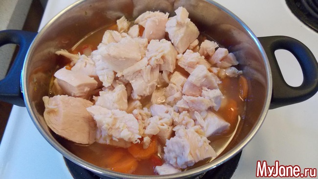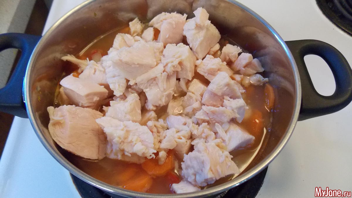Если не класть куриную грудку, то получается вполне постный суп, очень наваристый и ароматный. Совершенно без масла.