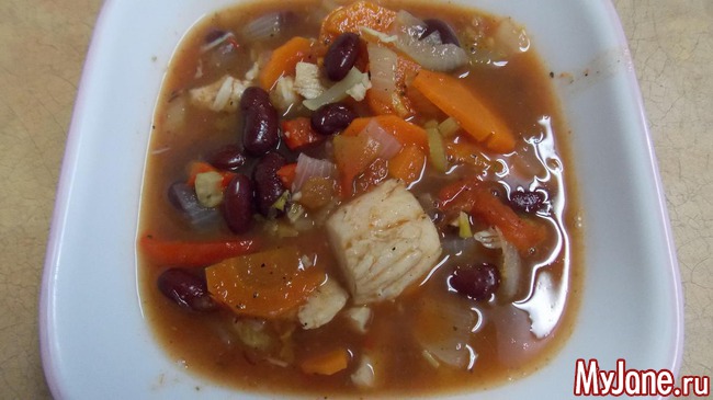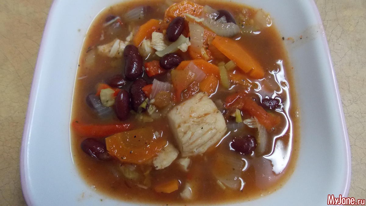 потом добавим красную фасоль, еще 10 минут поварим и все супчик готов.