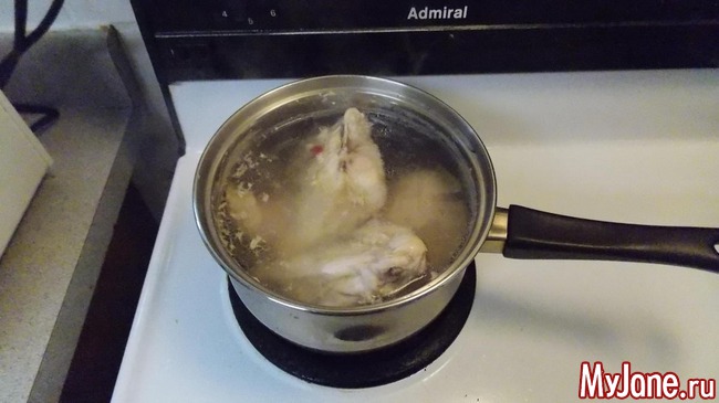 и пусть стоит маринуется, а косточки с остатками мяса на них отправим в кастрюлю, для бульона. Вдруг ризотто захочется сделать, а бульона и нет)))