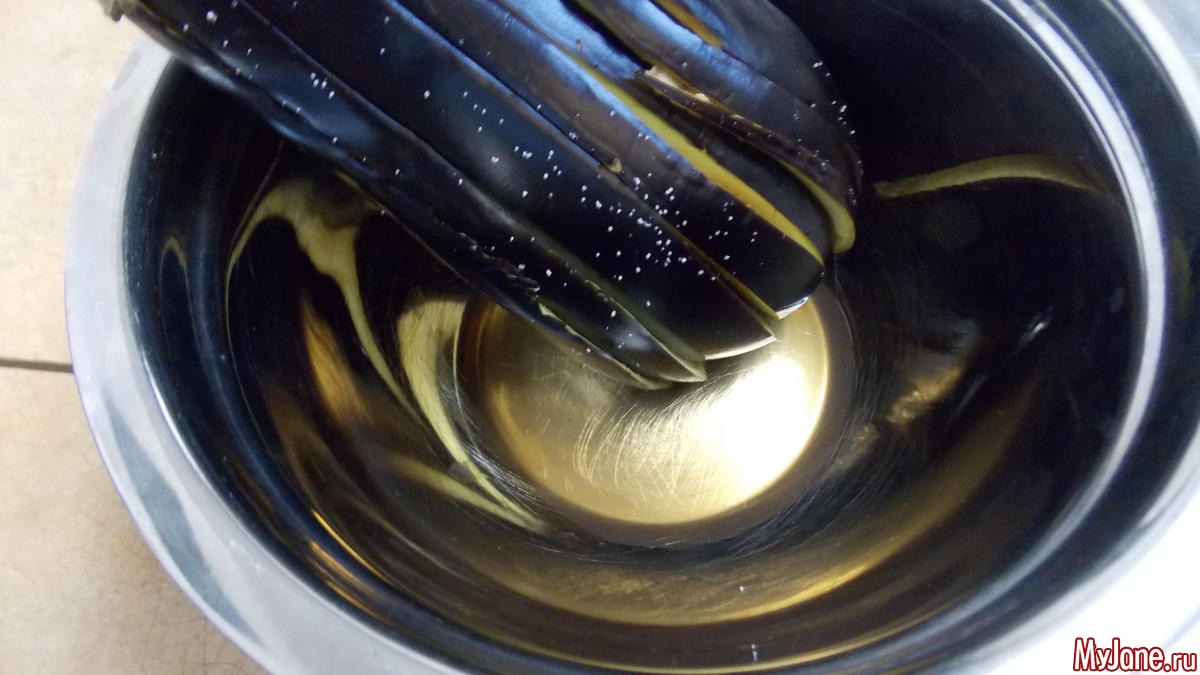 Посолим и положим полежать, чтобы сок слился и ушла горечь.