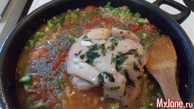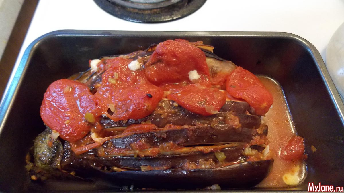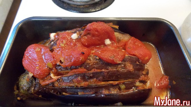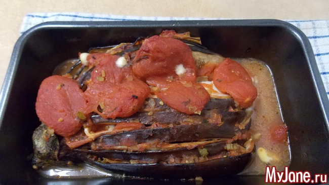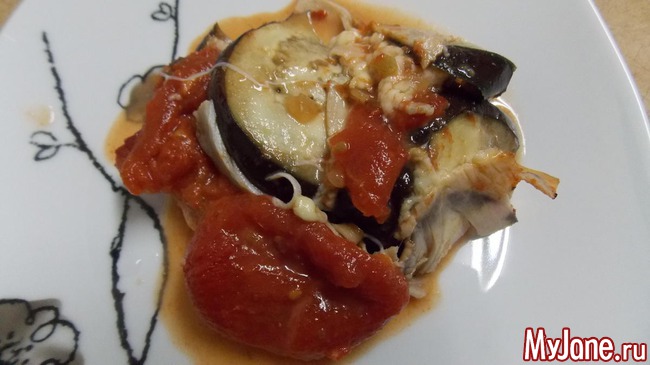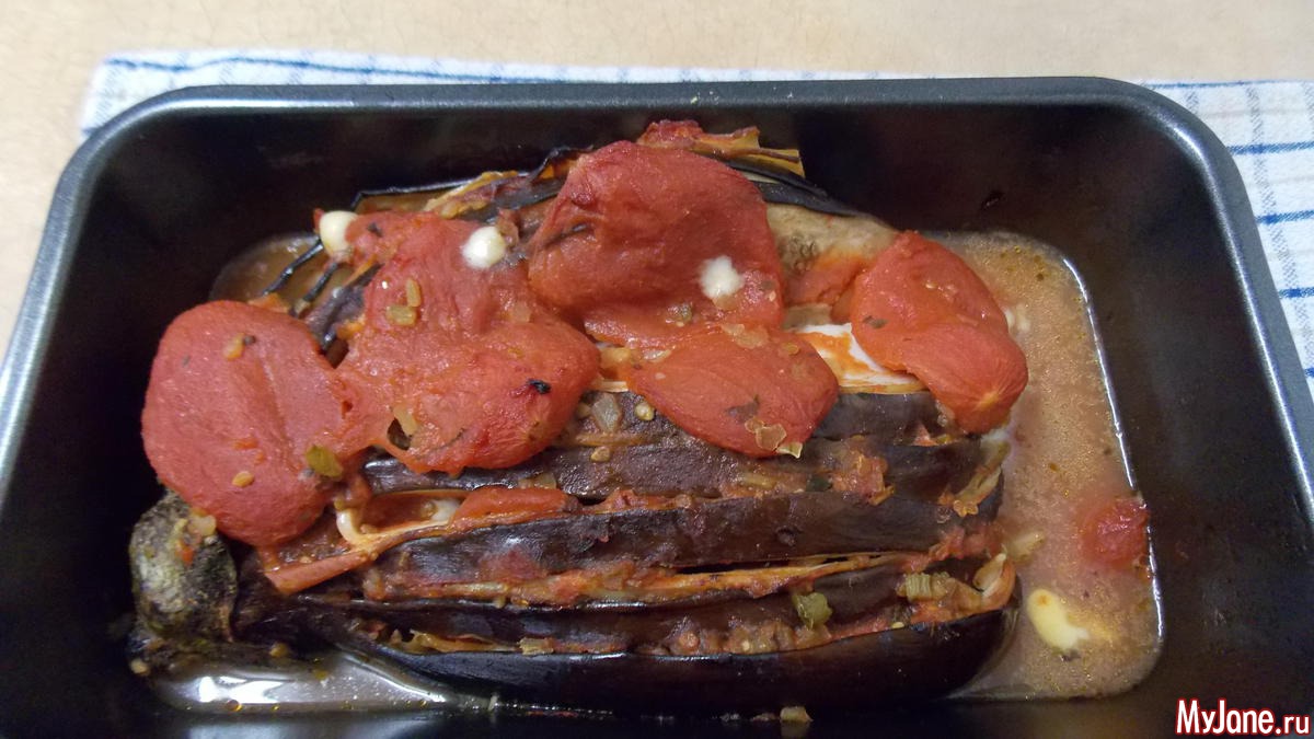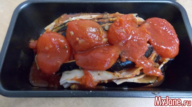 сверху проливаем соусом, который приготовили раньше, с помидорами наверх и в духовка на 200 гр