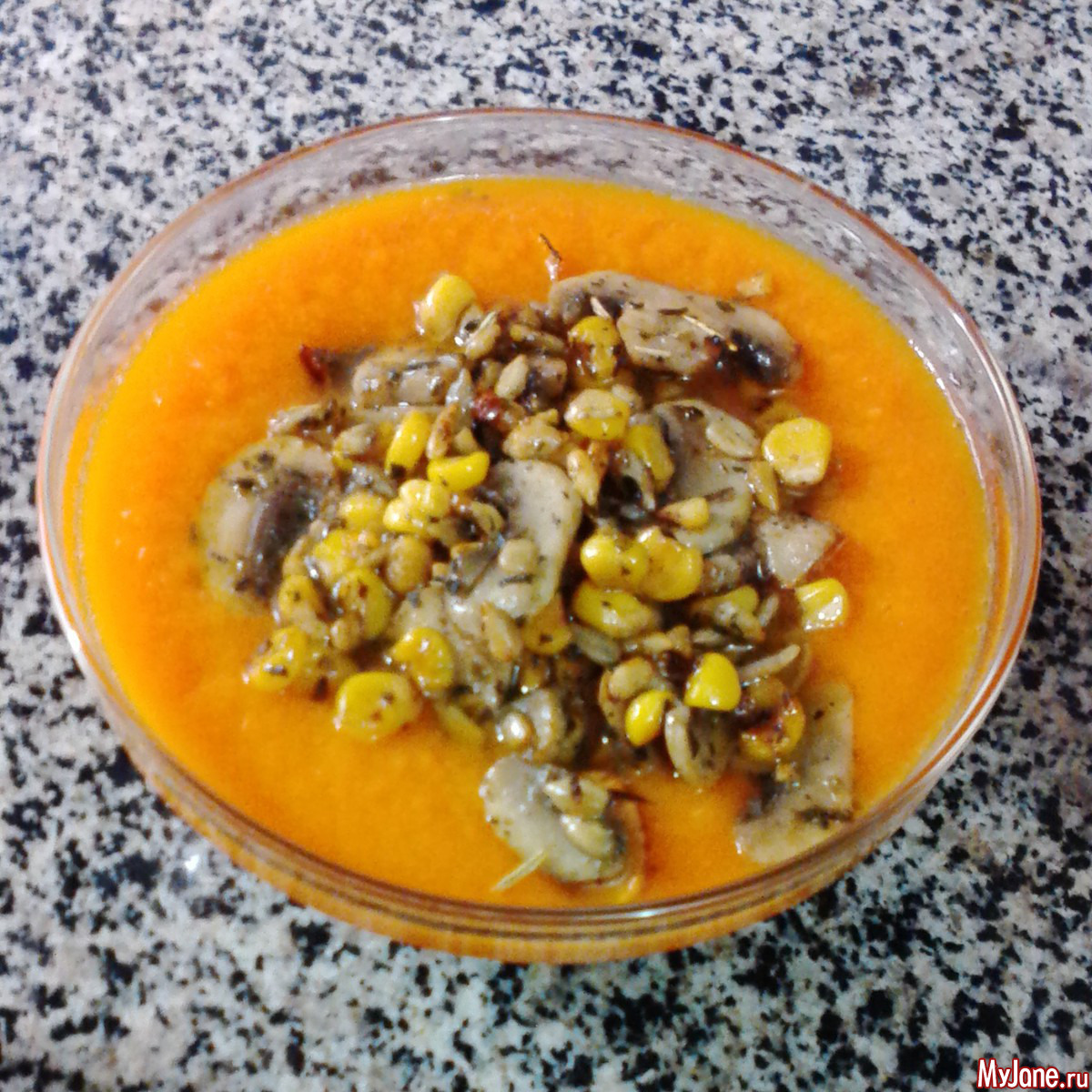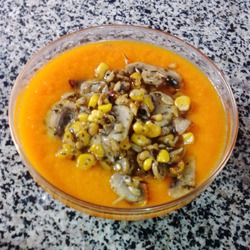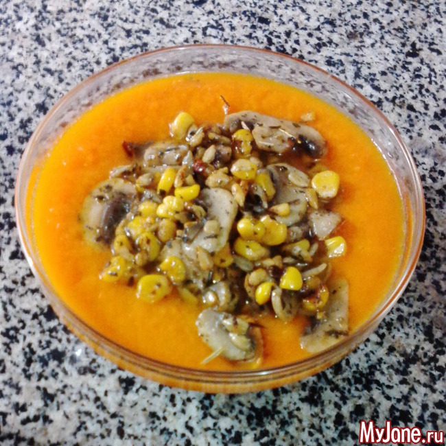 Тыкву немного заливаем водой, отвариваем до готовности, блендируем
