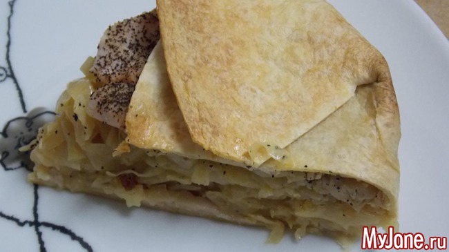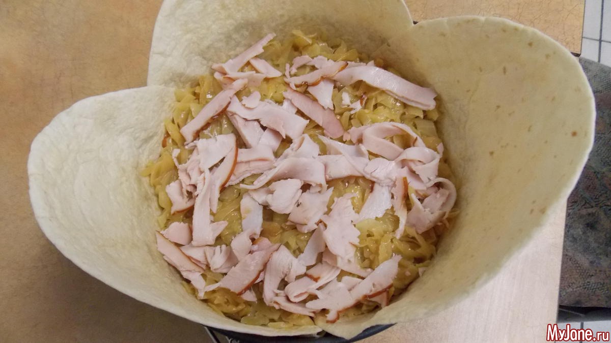 Вчера нажарил капусты, а Лаханоризо Котька не захотела, и пришлось просто сделать пирог с ветчиной из грудки индейки.