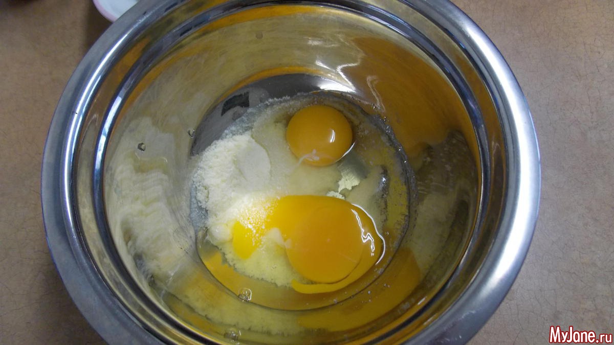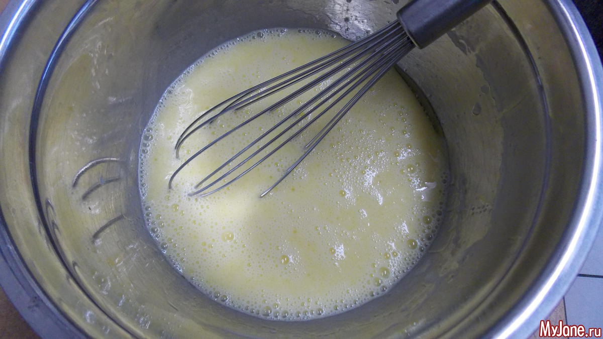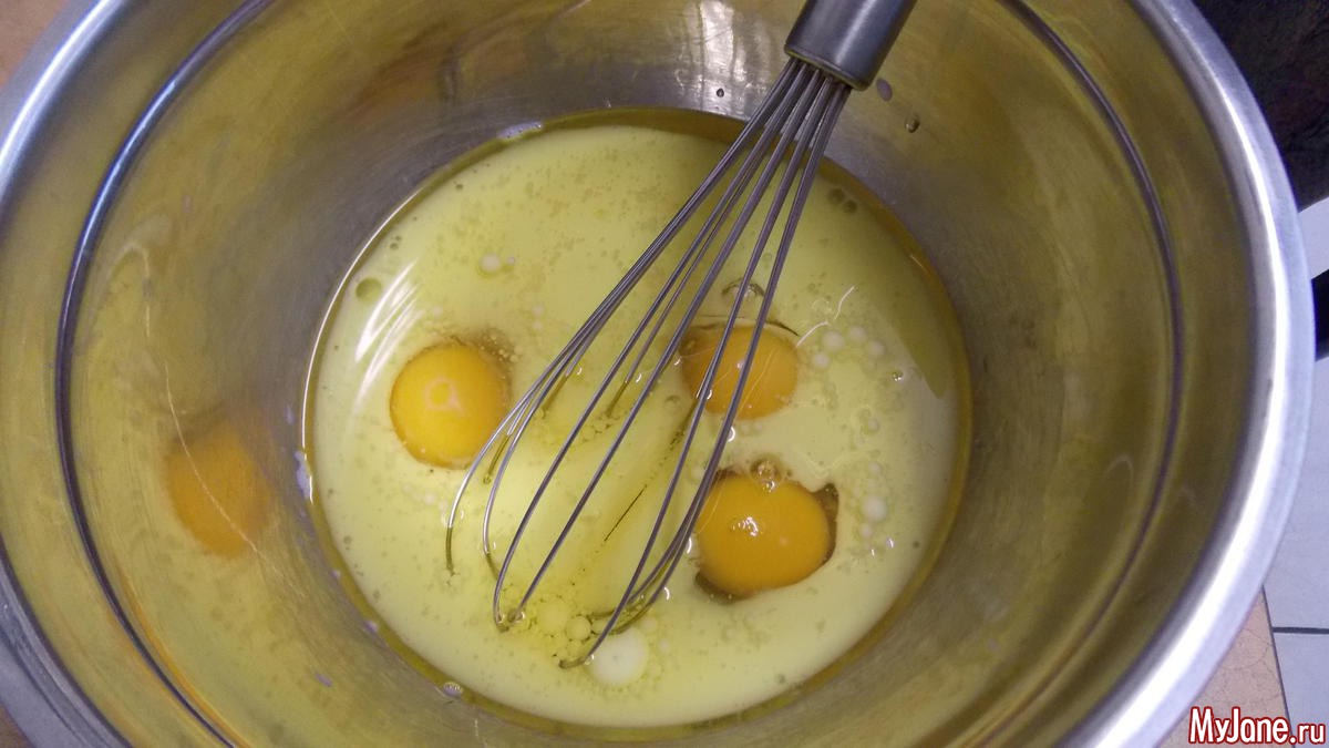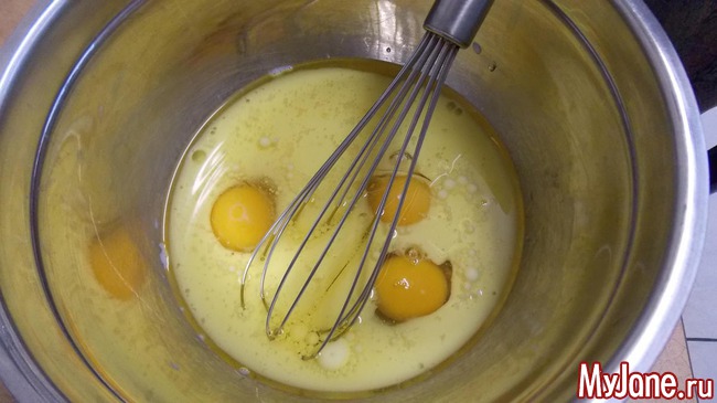 кекс все тот же, яйца с молоком и маслом взбиваем