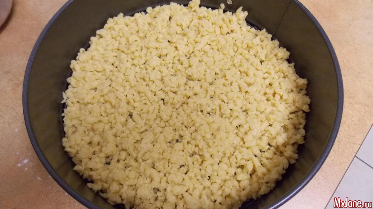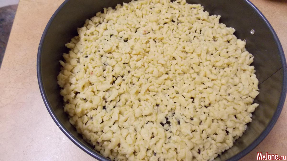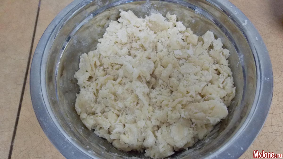 делаем песочное тесто. сперва крошку муки, сахара или сахзама и масла