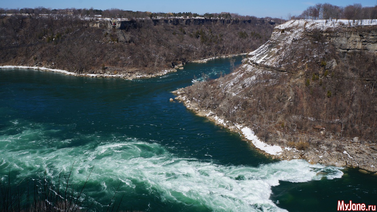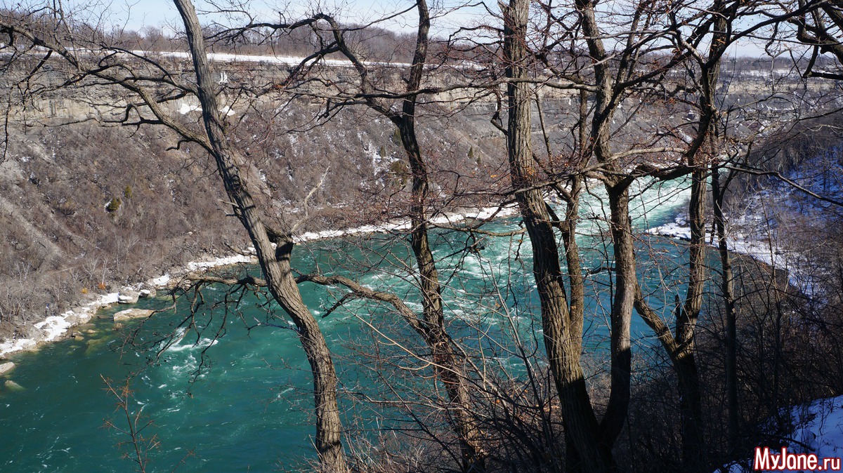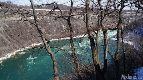 А это с противопоженной стороны. Отсюда подвесная люлька на другой берег по канатам ползает.