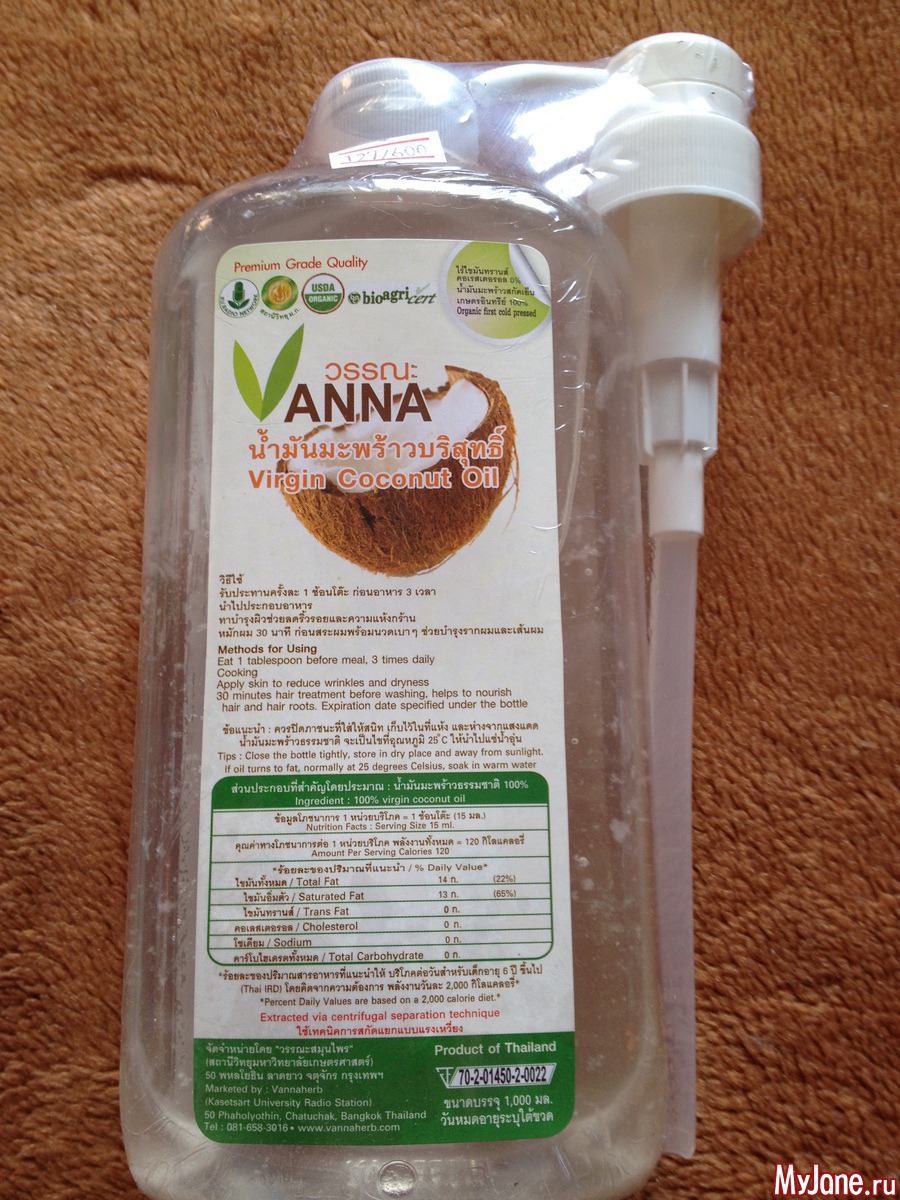 Кокосовое масло холодного отжима. Используют для лица, волос и тела.