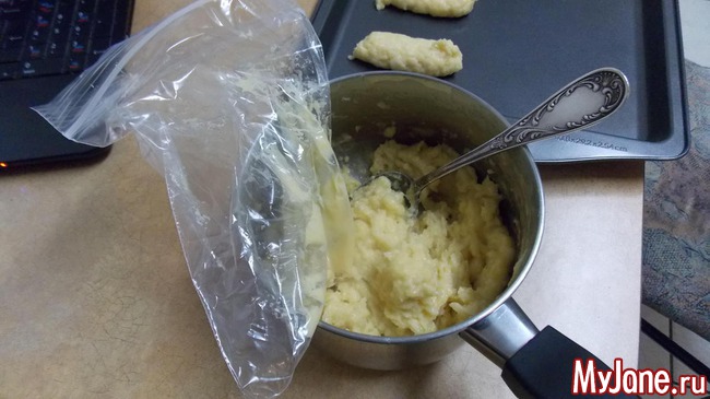 так называемые кулинарные мешки я не признаю, а пользуюсь обычнами зип-лок пакетами. кладем туда тесто и выдавливаем на противень