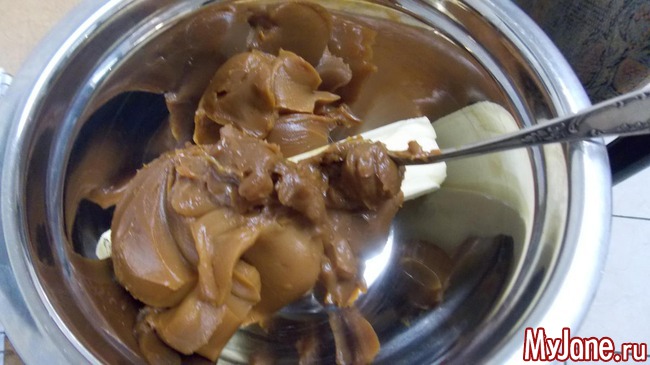 вареная сгущенка, она очень густая и я налил 30 мл сливок