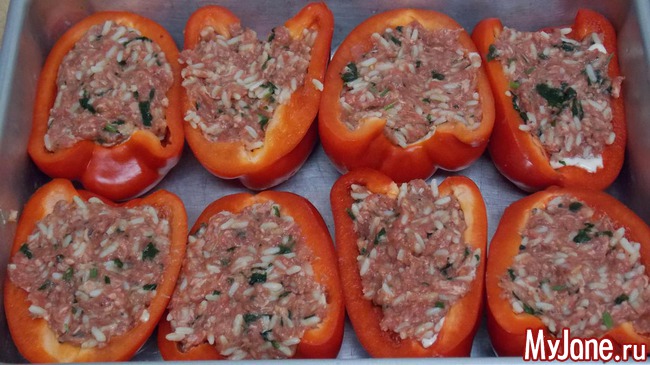 в фарш хорошо добавить натертый кабачок или цуккини, будет помягче. Софа любит жесткую середину в перцах