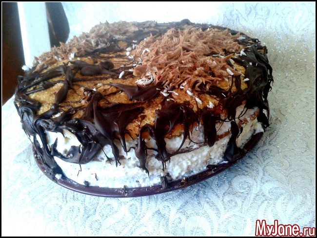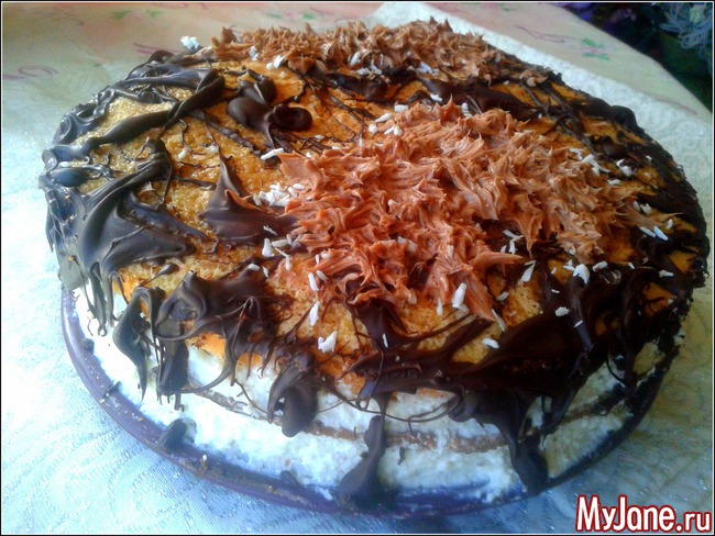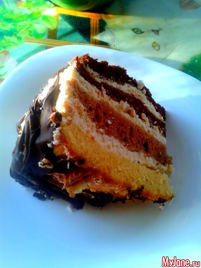 Поэтому я разнообразила его.2 коржа сделала по рецепту, два своих. Свои мне больше понравились, они намного мягче.