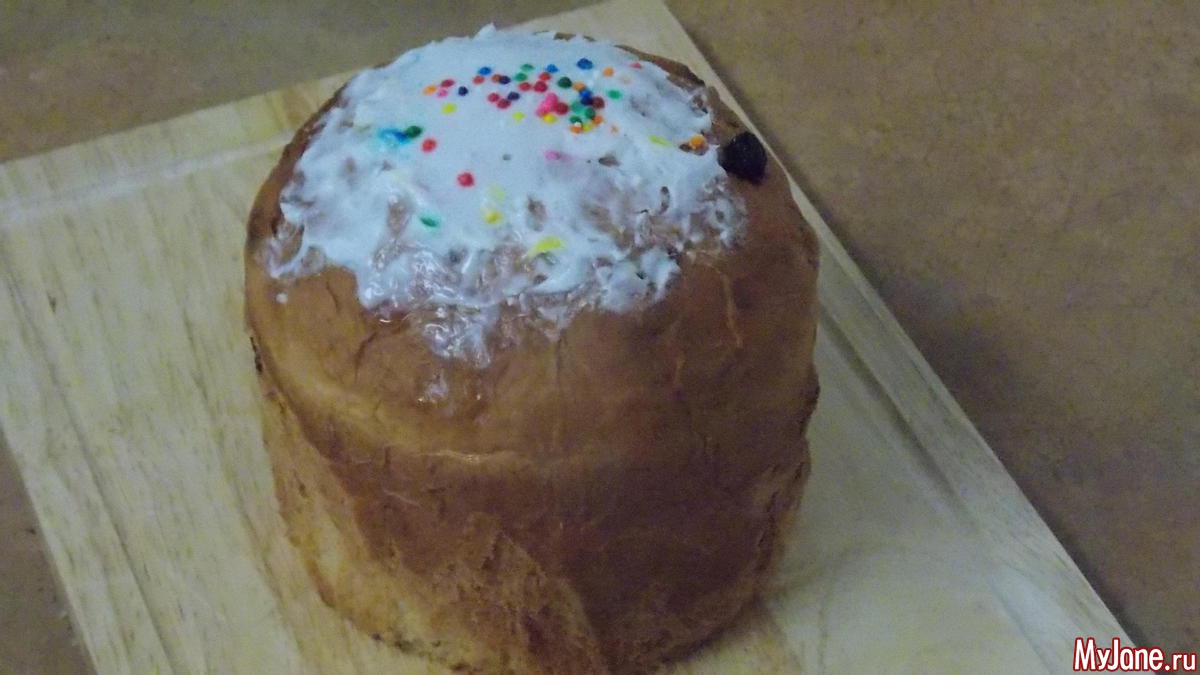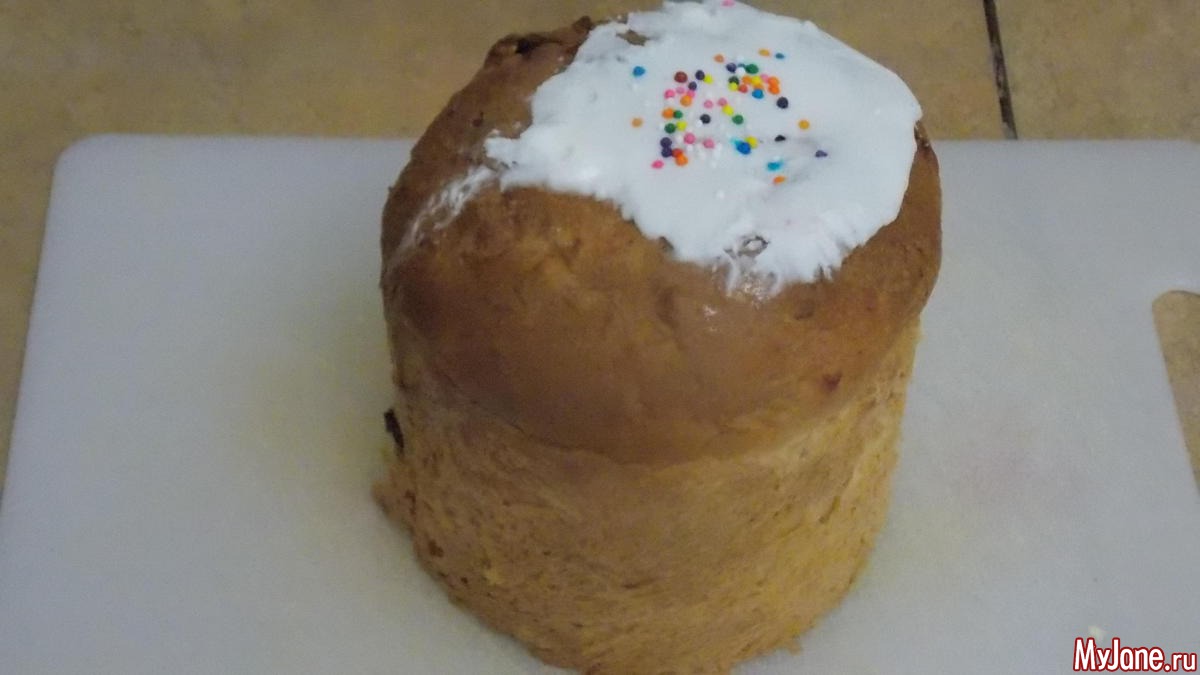 кулич. глазури кладу мало и стараюсь на один бок, потому что Котька не любит глазурь. вот такие однобокие получаются