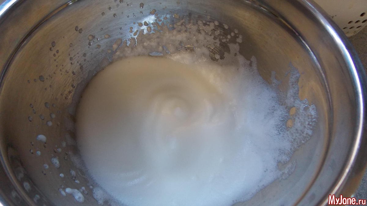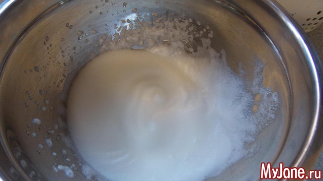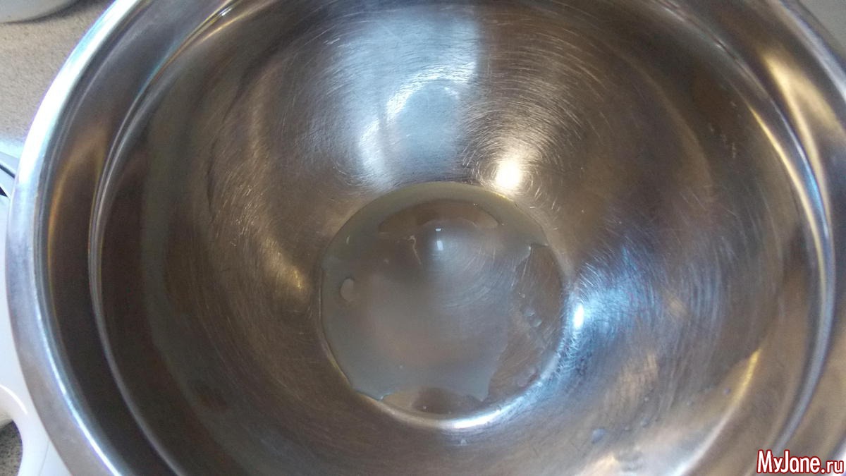 чайную ложку лимонного сока налить в миску где будем взбивать белки