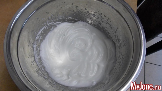 добавляем сахзам и взбиваем до крутой пены