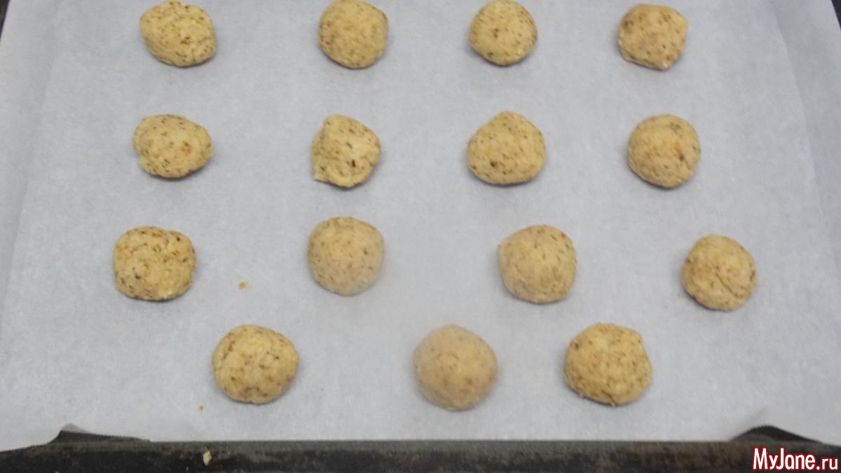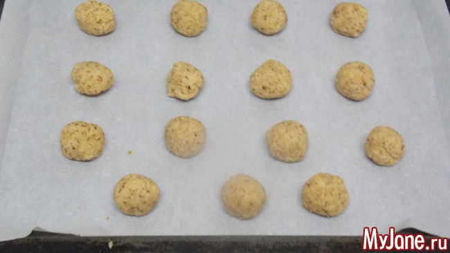 делаем шарики из получившегося теста и раскладываем на бумагу для выпечки. можно оставить так