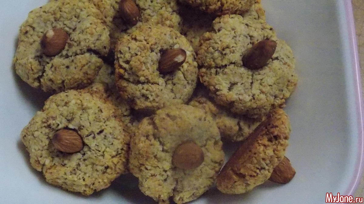 У меня получилось 15 печенинок по 10 гр каждая. На штуку 49 ккал, если без миндаля сверху то 45 ккал.