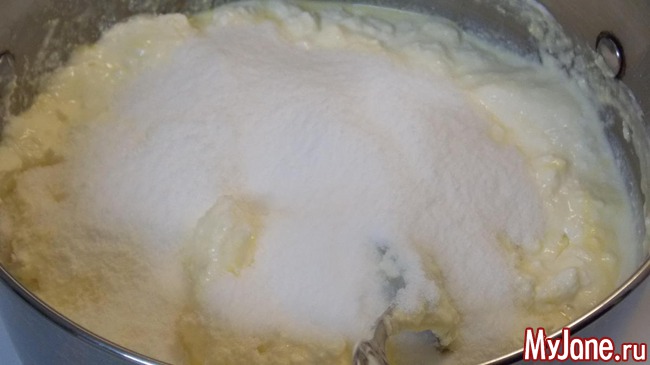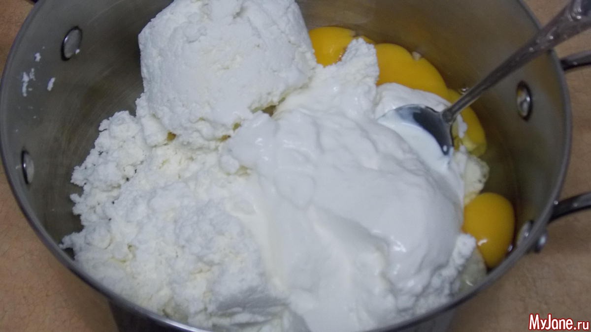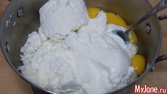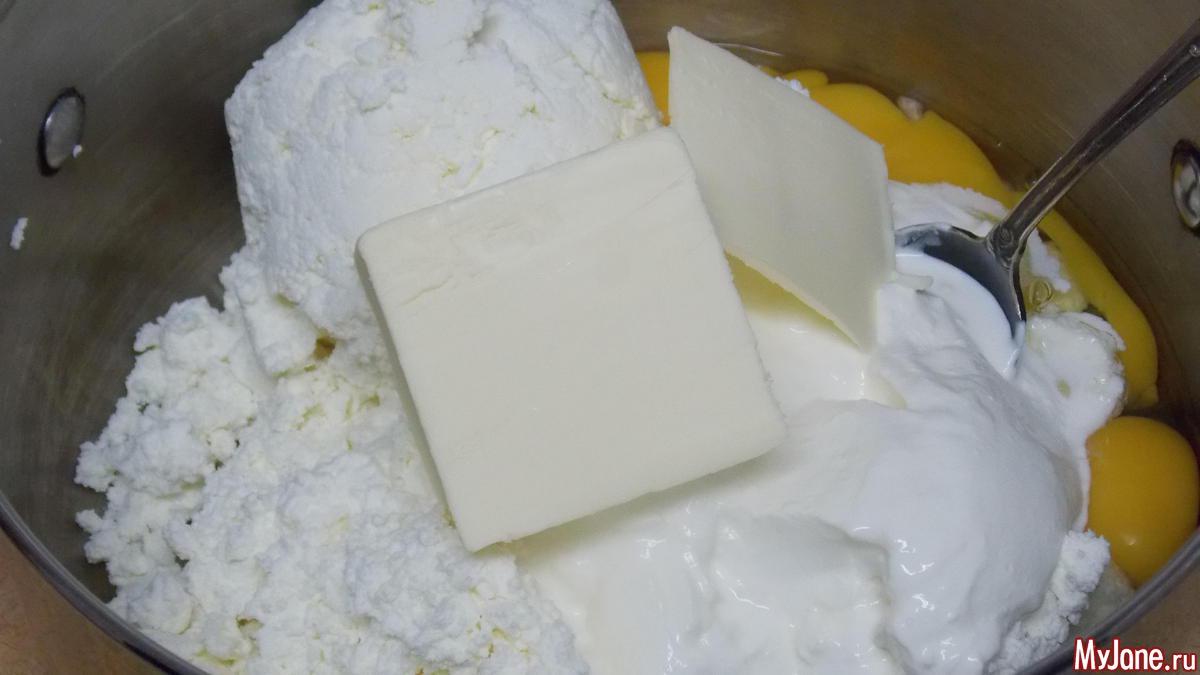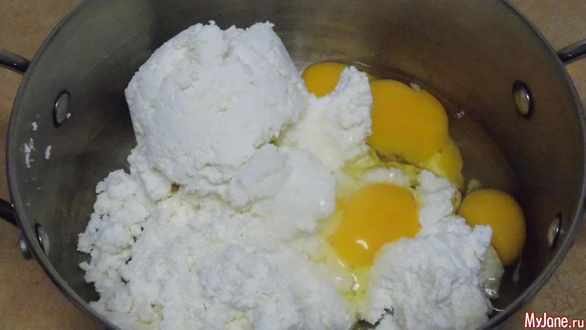 выкладываем творог в кастрюлю в которой будем варить пасху, желательно с широким дном
