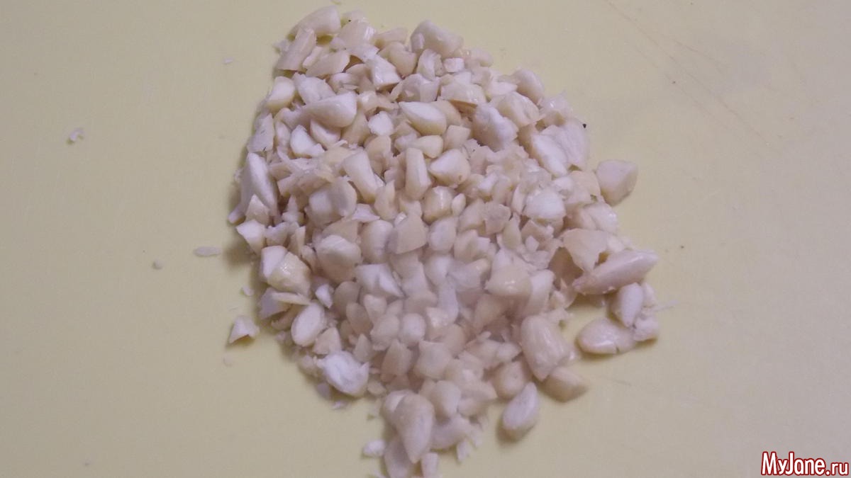 кладем зелень и чеснок