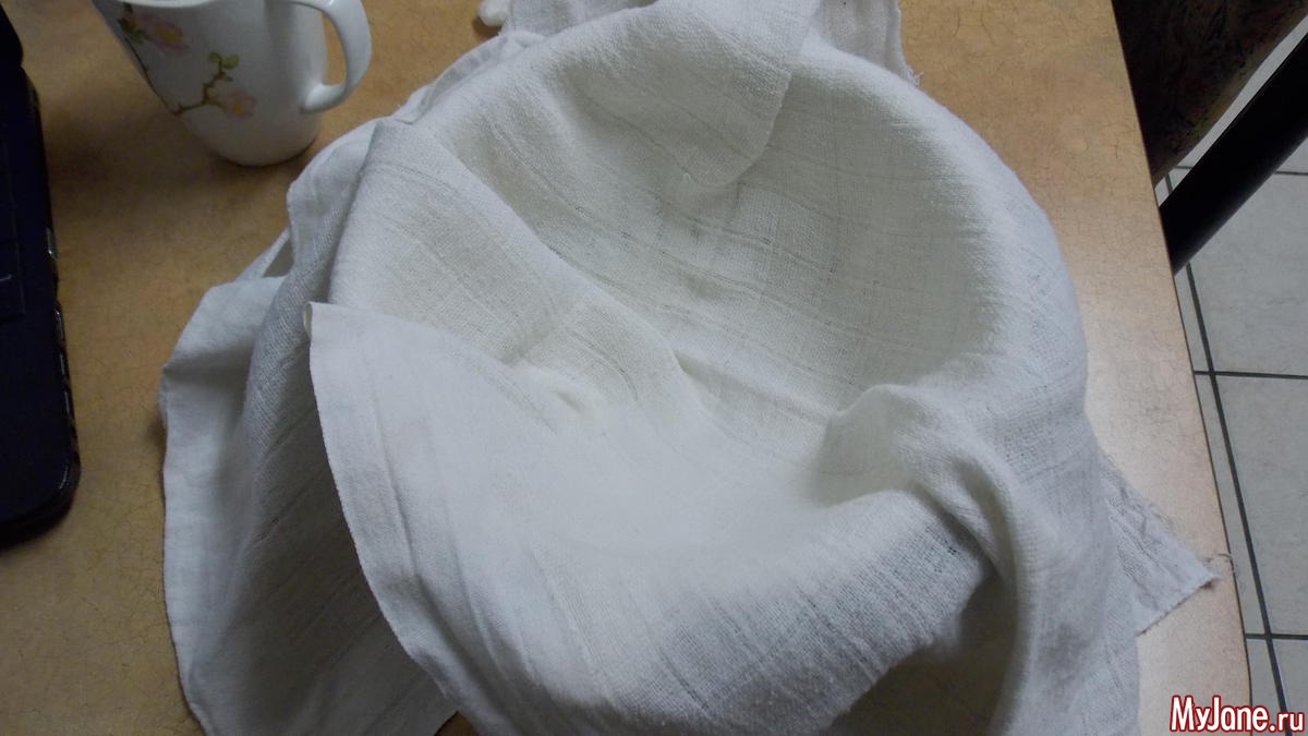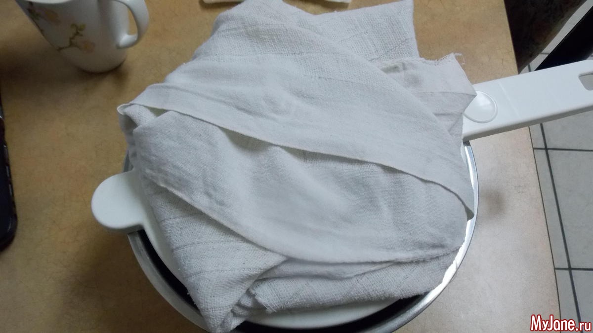 закрываю марлей сверху и в холодильник, стекать на ночь.